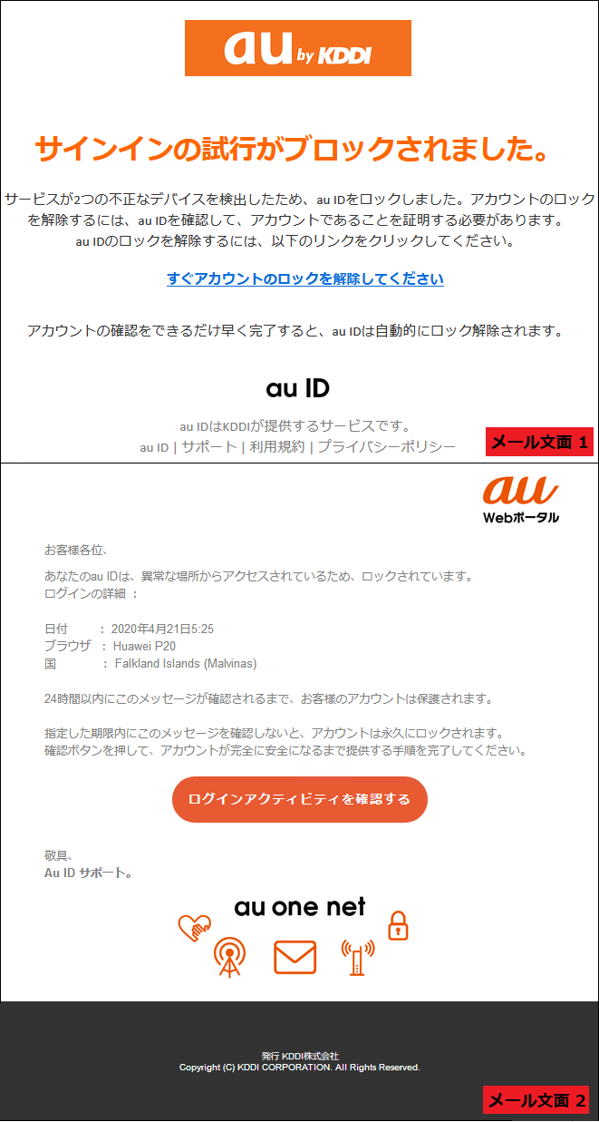 不正なデバイスの検知でau Idをロックした Au騙る偽メール フィッシング対策協議会 2020年4月24日 エキサイトニュース