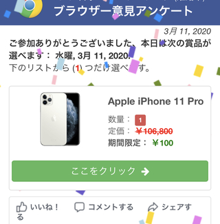 Iphone11が100円で貰える 先程 Googlechromeを使 Yahoo 知恵袋