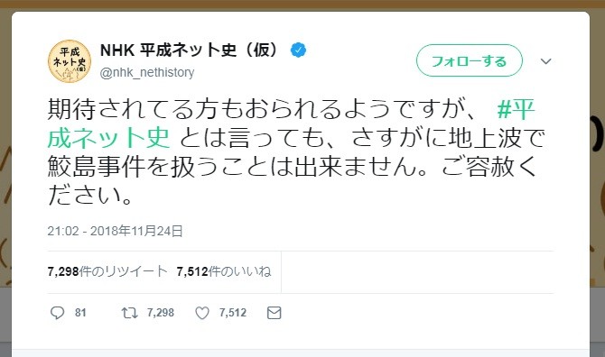 Nhk ツイッターでまさかの 鮫島事件 言及も 2chは意外な反応 ニコニコニュース